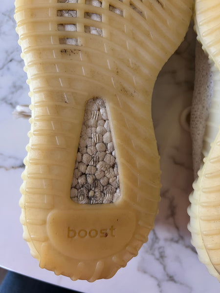 Bon état général (sauf semelles manquantes) Marque : Yeezy Pointure 38 2/3 Pour la longueur je mesure 1m71 Prix d'achat Neuf: 250€