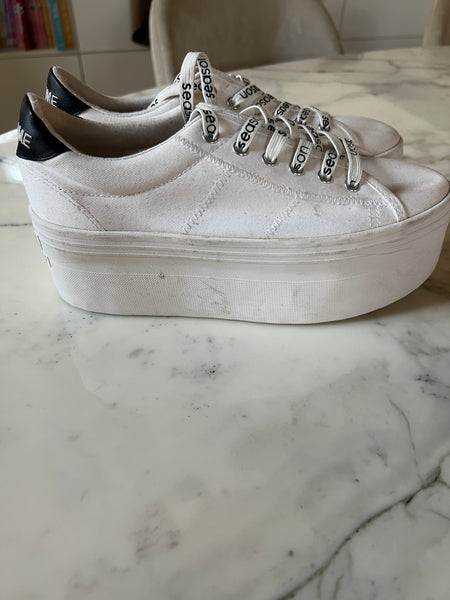 Bon état général (comme sur les photos) Marque : No Name Hauteur des talons : 6cm Pointure 38 Pour la longueur je mesure 1m71 Prix d'achat Neuf: 109€