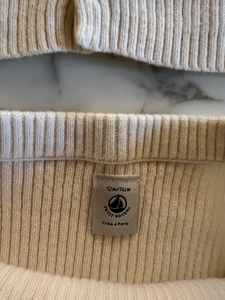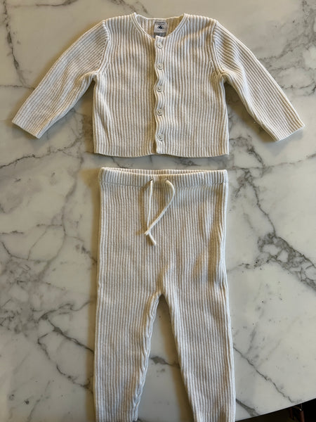 Petit Bateau - Ensemble Legging et gilet cotelé en laine ecrue T.12 mois