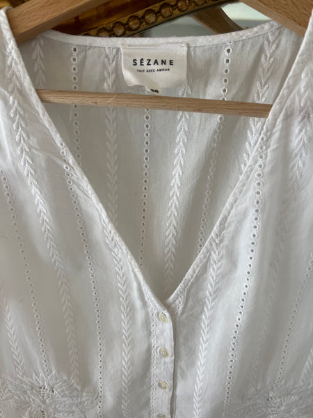 Très bon état Marque : Sézane Taille 38 100% Coton Pour la longueur je mesure 1m71 Prix d'achat estimé neuf 95€