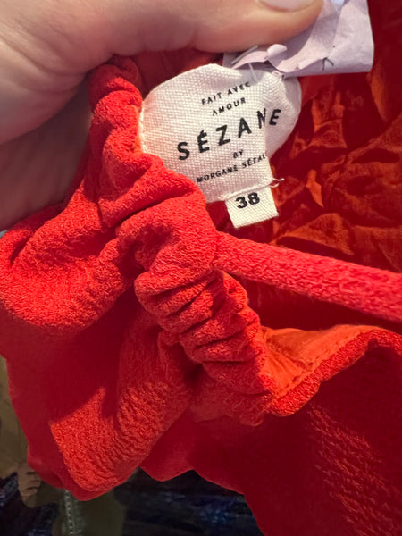 Très bon état Marque : Sézane Taille 38 Polyester et Elasthane Pour la longueur je mesure 1m71 Prix d'achat estimé neuf 150€
