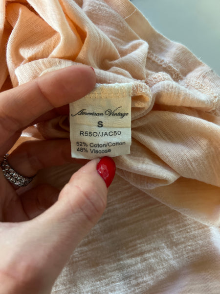 Très bon état général seulement étiquettes composition coupées Marque : American Vintage Taille S 52% Coton et 49% Viscose Pour la longueur je mesure 1m71 Prix d'achat Neuf: 40€