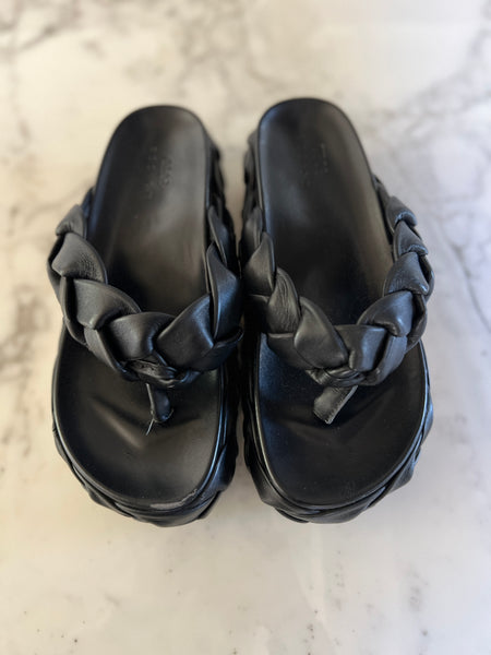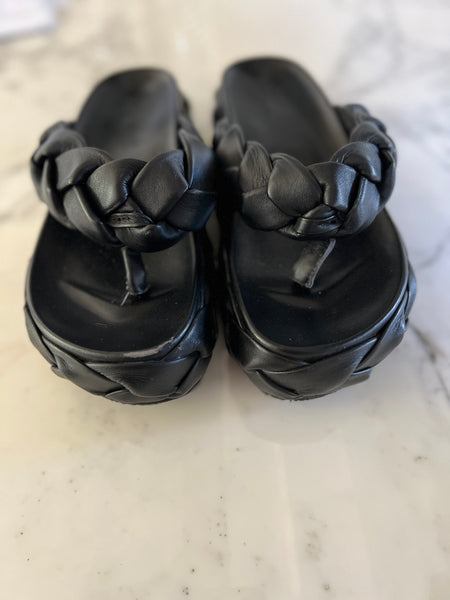 Malika Menard Sandales compensées Asos tressées en cuir avec entredoigt noires