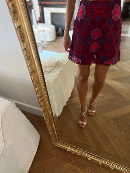 Très bon état (tirettes sur le haut de la jupe) - Marque : Sandro Taille 2 Polyester et Coton Pour la longueur je mesure 1m71 Prix d'achat estimé neuf 195€