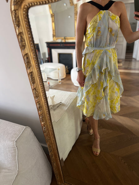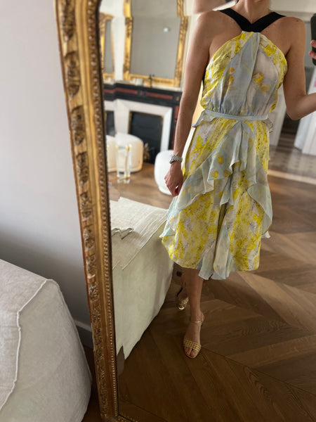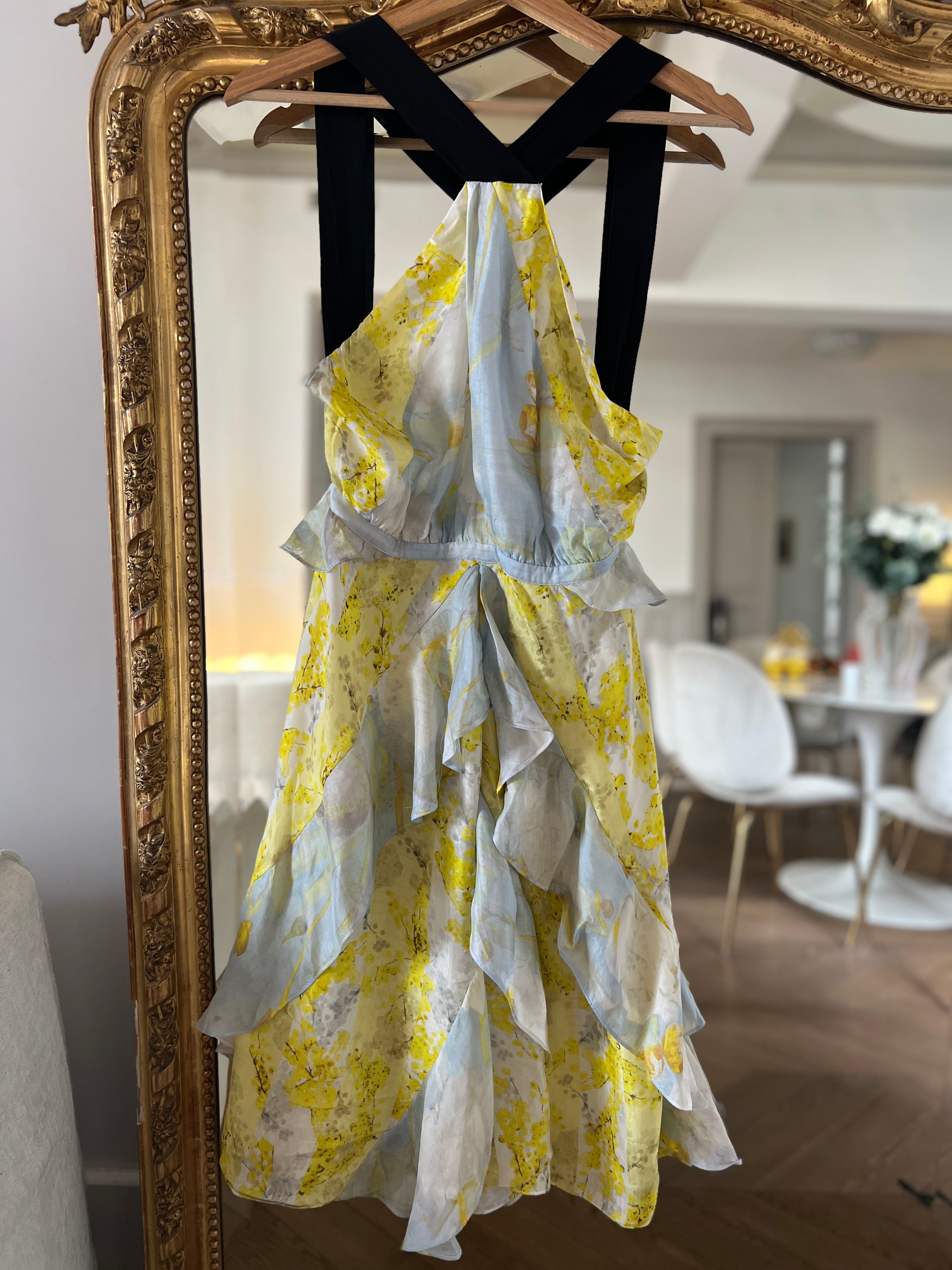 Noémie Lenoir Robe H&M Conscious Exclusive en soie jaune