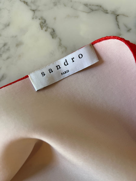 Très bon état Marque : Sandro Taille 1 Polyester et Elasthane Pour la longueur je mesure 1m71 Prix d'achat estimé neuf 295€