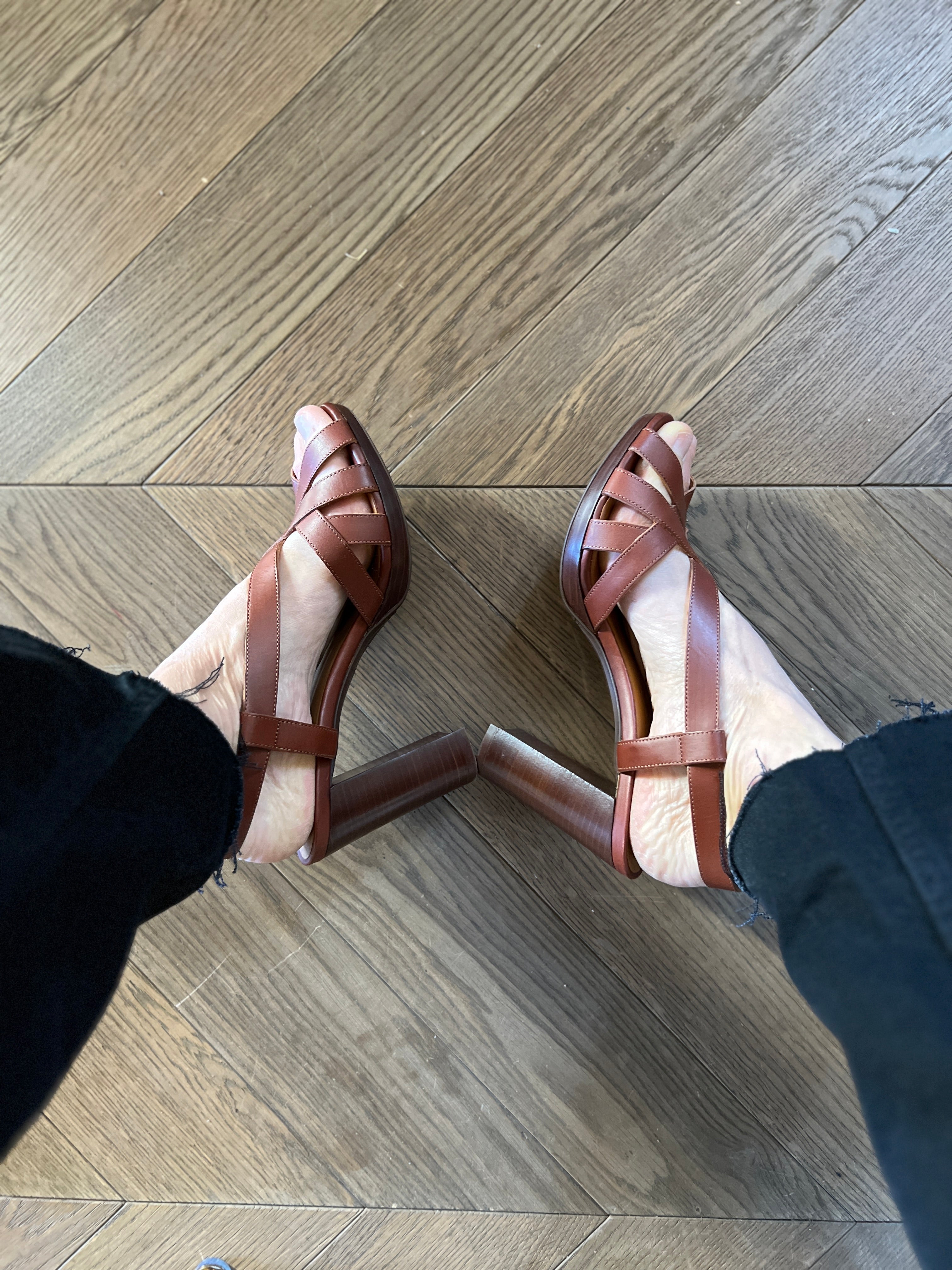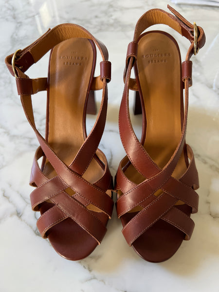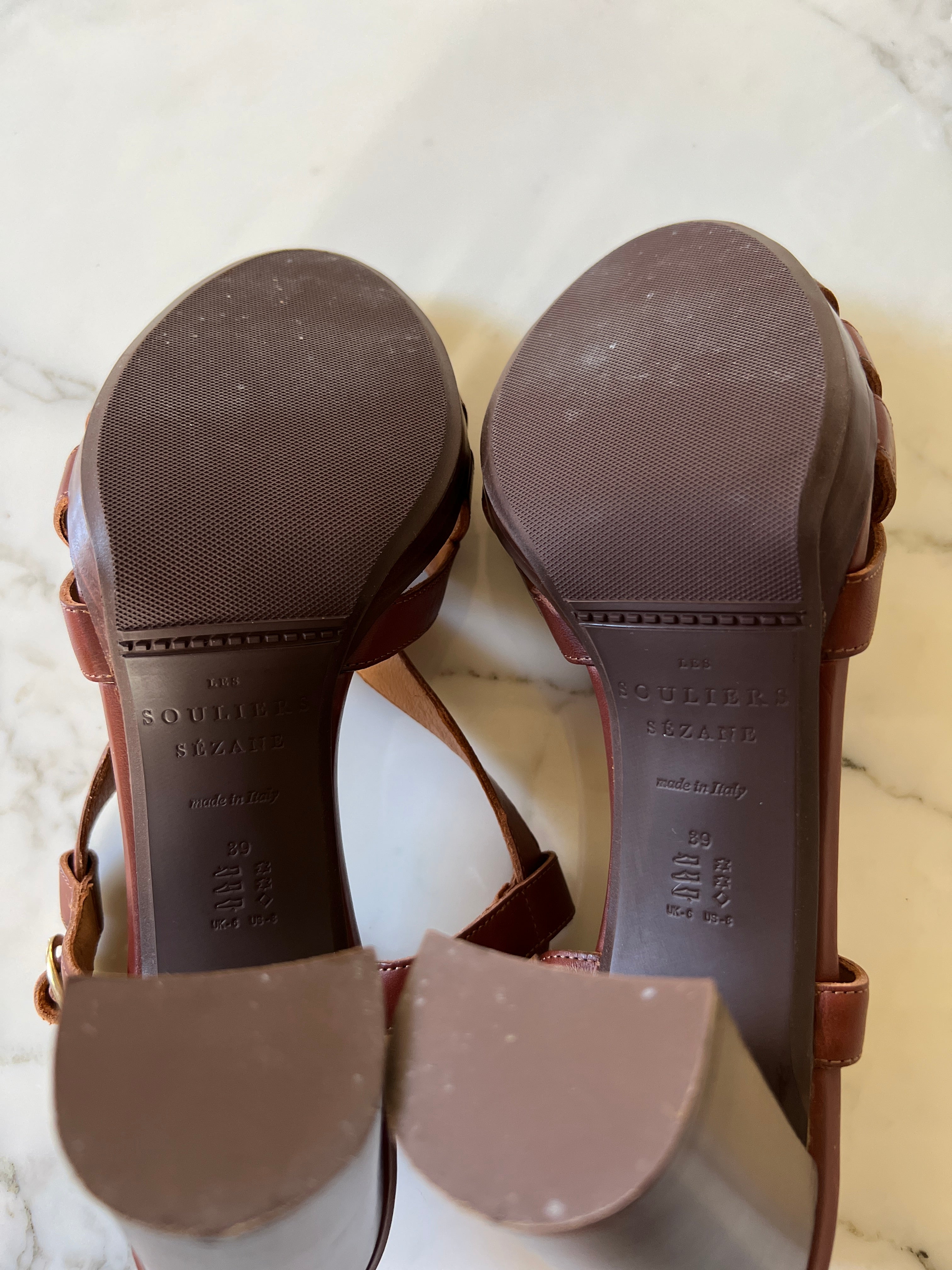Très bon état comme neuves Marque : Sézane Hauteur des talons : 10cm Pointure 39 100% Cuir Prix d'achat estimé neuf 175€